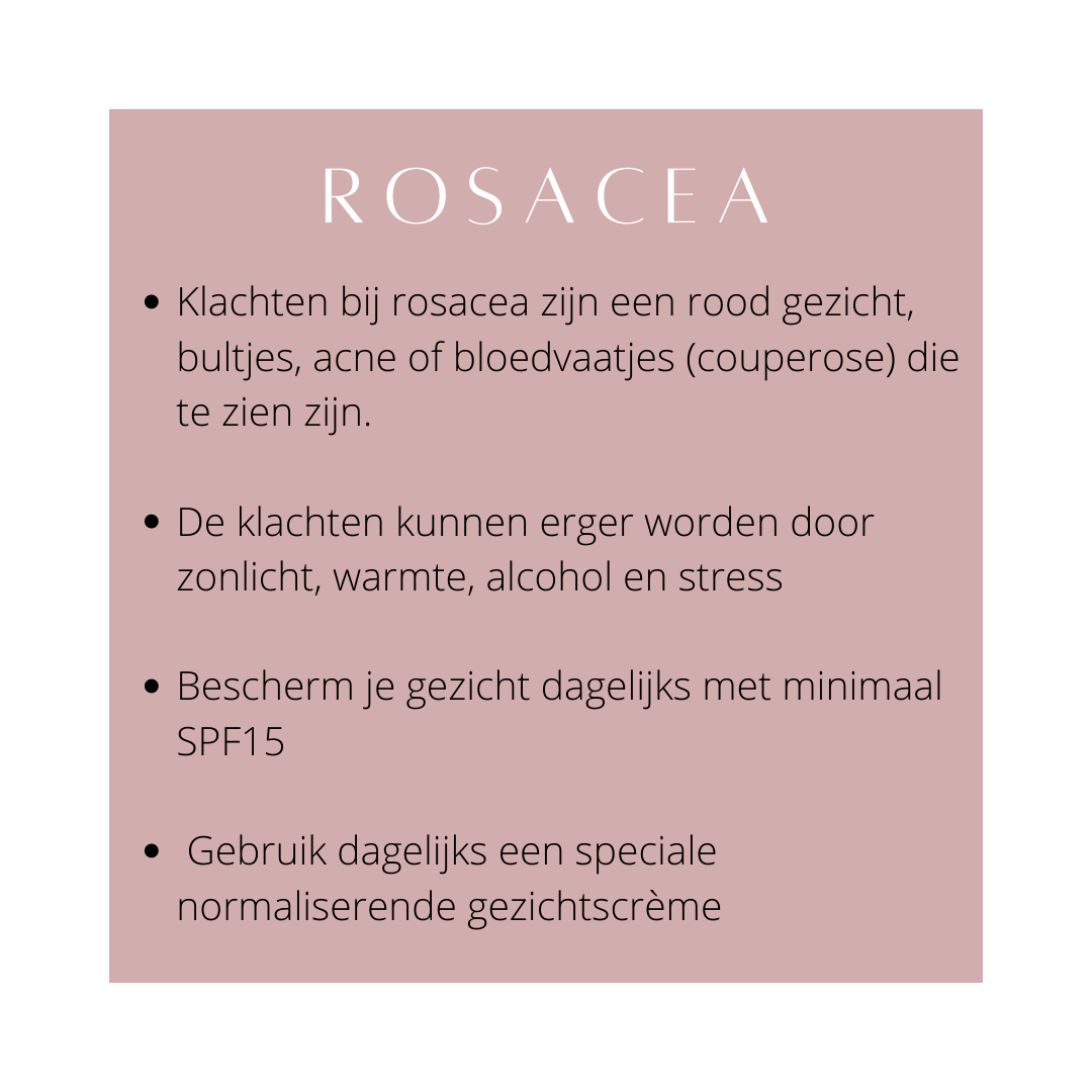 Emotionscincare heeft de Azulen Plus lijn speciaal ontwikkelt voor de delicate, droge en gevoelige huid met veel roodheden. Deze roodheden in de huid kunnen ontstaan door couperose of rosacea. De Azulen Plus lijn kalmeert, hersteld en werkt ontstekingsremmend. Het verstrekt het immuunsysteem zodat de huid ook zelf weerstand kan bieden tegen invloeden van buitenaf. Het verbetert de elasticiteit en vult lijntjes en rimpels op. Binnen deze lijn is de light Cream 96 speciaal ontwikkeld voor personen met een gevoelige huid die niet een te vol product willen gebruiken maar wel een aangenaam huidgevoel wensen. Wat is rosacea? Rosacea betekent letterlijk "rood als een roos" en duidt op een veel voorkomende chronische huidaandoening in het gezicht. Het meest opvallende is de felrode kleur van de wangen en de neus. De vier belangrijkste kenmerken zijn roodheid, couperose, bultjes (appels) en puistjes (pustels). De aandoening kan lijken op acne, echter komt rosacea meestal pas op latere leeftijd (boven het 30e jaar) voor. Deze aandoening komt meer voor bij vrouwen dan bij mannen en kan variëren van mild tot ernstig. De oorzaak van rosacea is onbekend. De ernst van de aandoening kan worden beïnvloed door uitwendige factoren waardoor de klachten kunnen toenemen. Voorbeelden hiervan zijn warmte, zonlicht, cosmetica, huidverzorgingsproducten en sommige geneesmiddelen. Wat is couperose? Couperose is een netwerkje van kleine, rode en soms blauwe bloedvaatjes op wangen, kin, neus, hals of decolleté. Bij couperose zijn de vaatwandjes verzwakt. Het ontstaan hiervan kan onder andere gebeuren door veroudering, veel buiten zijn in weer en wind, blootstelling aan UV-straling, maar ook een erfelijke aanleg kan een rol spelen. Daarbij komt dat roken, zwangerschap, sommige medicatie en een trauma aan de huid couperose kan verergeren. Couperose kan ook een symptoom van onderliggende huidproblemen zijn zoals rosacea. Couperose is in principe onschuldig, maar het wordt door veel mensen als vervelend ervaren. Wat kan er gedaan worden tegen de delicate huid met roodheden? Roodheden aan de huid zijn vaak lastig te camoufleren en naast dat het voor veel mensen ontsierend is kan het soms zelfs pijnlijk zijn. Bij grote temperatuurverschillen kan het gezicht rood aanlopen en heel warm worden. Je kunt je hierdoor erg onzeker voelen en het idee hebben dat iedereen naar je kijkt. Eenmaal verwijde vaatjes trekken niet meer vanzelf weg. Gelukkig kunnen roodheden goed worden behandeld zodat de huid weer heerlijk kan stralen. Rosacea is doorgaans goed te behandelen, maar zelden definitief te genezen. Belangrijk hierin is dat dat men niet stopt met de huidverzorging. Resultaten met de de Azulen Plus van Emtionscincare Beauty-Barn heeft enorm goede ervaringen met het gebruik van de Azulen Plus lijn van Emtionscincare. De combinatie van een behandeling en het thuisgebruik van de producten heeft bij verschillende klanten de huidverbetering enorm gestimuleerd. Heb jij last van roodheden in de huid en ontvang jij graag een advies over een mogelijke behandeling? Vul dan hier het formulier in voor een gedegen huidadvies. Ben je enthousiast geworden over onderstaande resultaten en wil jij dit zo snel mogelijk ook met jouw huid bereiken? Koop dan hier de Azulen Light Cream 96 van Emotionscincare.
